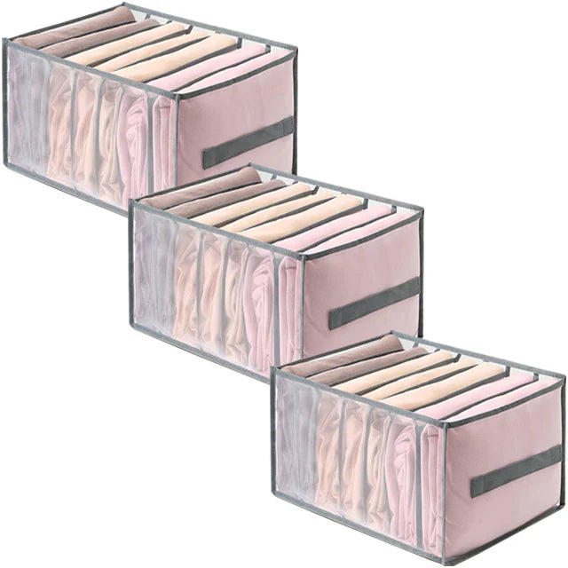 Esta Colmeia Organizadora de Roupas - SmartCloset permite que você dobre suas roupas de maneira uniforme e organizada, proporcionando uma maximização eficiente do espaço disponível.