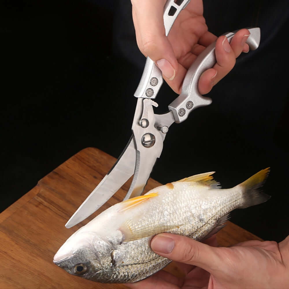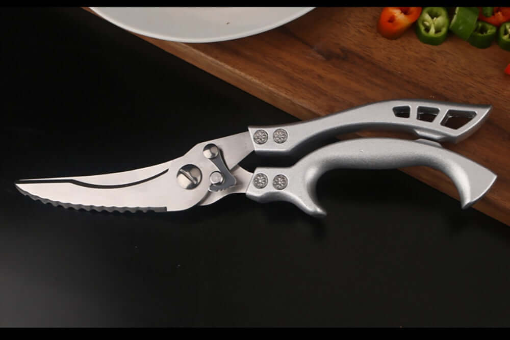 ✅ Tesoura multiuso afiada para carne, legumes e ossos.